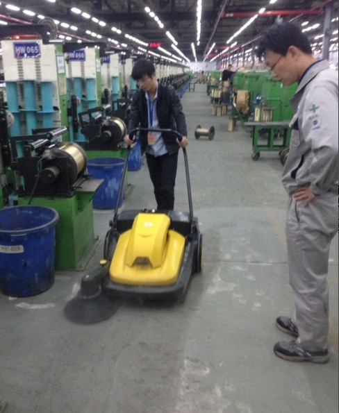 手推式扫地机应用于水泥地面 扫地机在很多人的印象中往往出现于家用扫地机器人,马路上的大型清扫车,殊不知工厂中应用广泛的手推式扫地机越来越多的被企业认可。 手推式扫地机主要用于工厂地面清扫,具有转向灵活,机身可以进入通道,清扫灰尘效果明显,特别是容易起灰的水泥地面。 图为我司产品应用于工厂水泥地面清扫灰尘,效果显著。