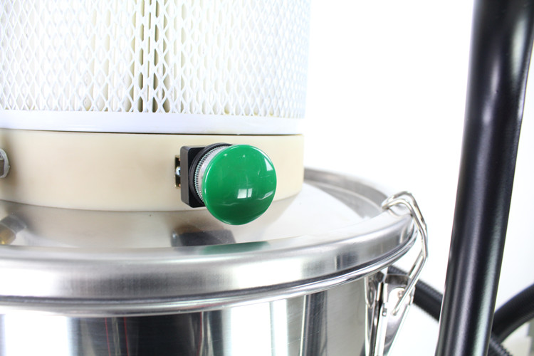 机器拥有气动反吹功能,能有效防止过滤器堵塞,适用于粉尘量比较大的场所,机器采用压缩空气为动力,根据文丘理原理达到真空吸尘效果。